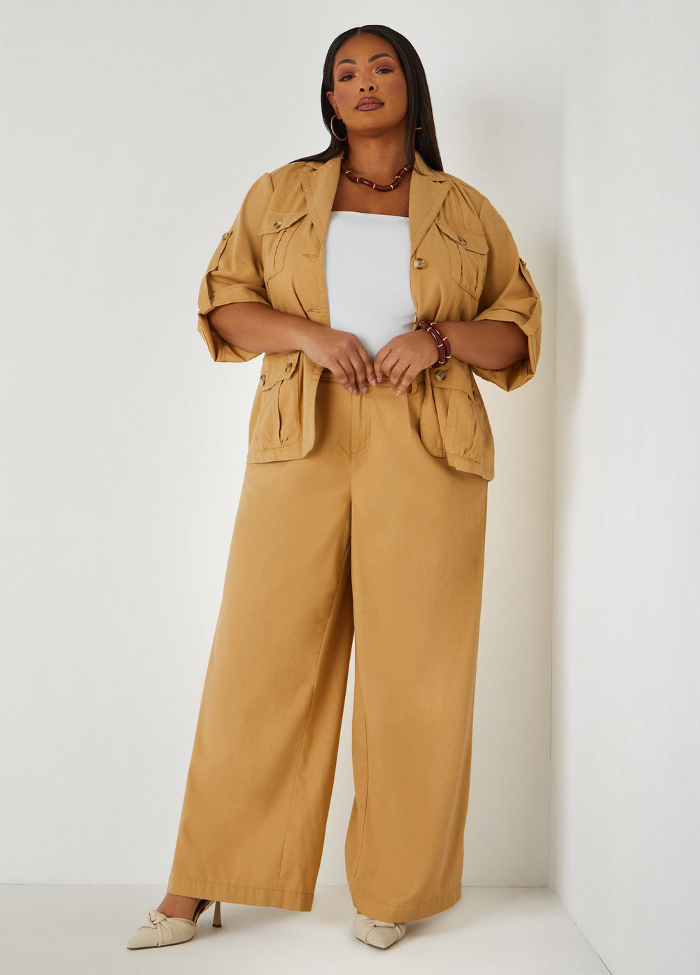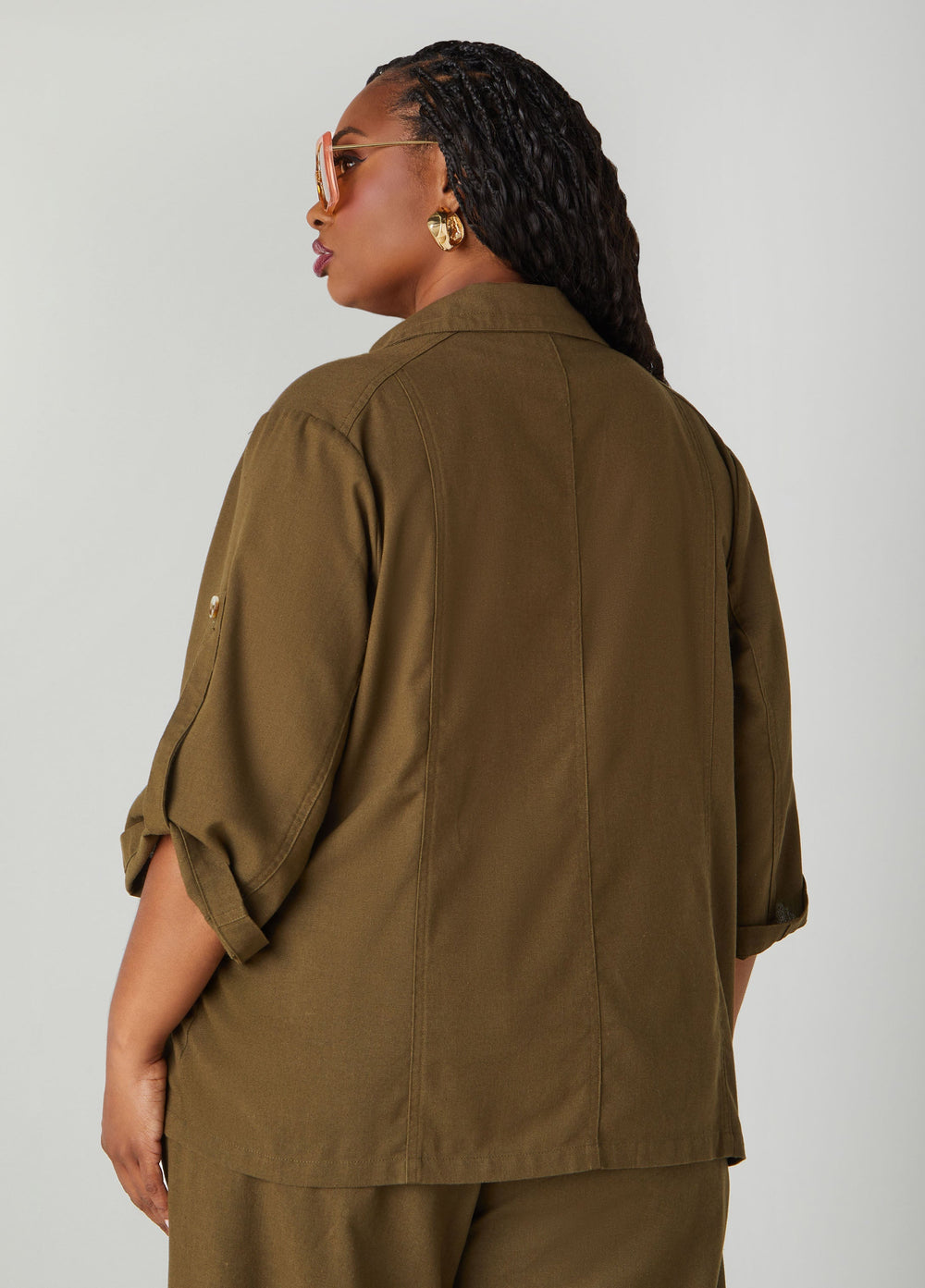 Crisp and versatile. this woven cargo jacket brings a polished touch to utility style. Designed with a linen-inspired feel. it features four front cargo pockets for a structured look. Pair it with the matching pants for a coordinated set that's effortlessly put together.