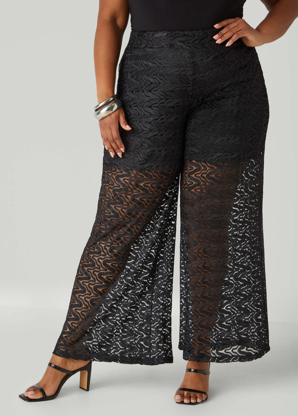 Our wide-leg pants are cut from luxe lace & lined just enough to keep things comfortable. The elasticized waist makes them a breeze to pull on. while the peek of skin keeps things interesting. Wear them with the matching jacket when you're feeling extra.