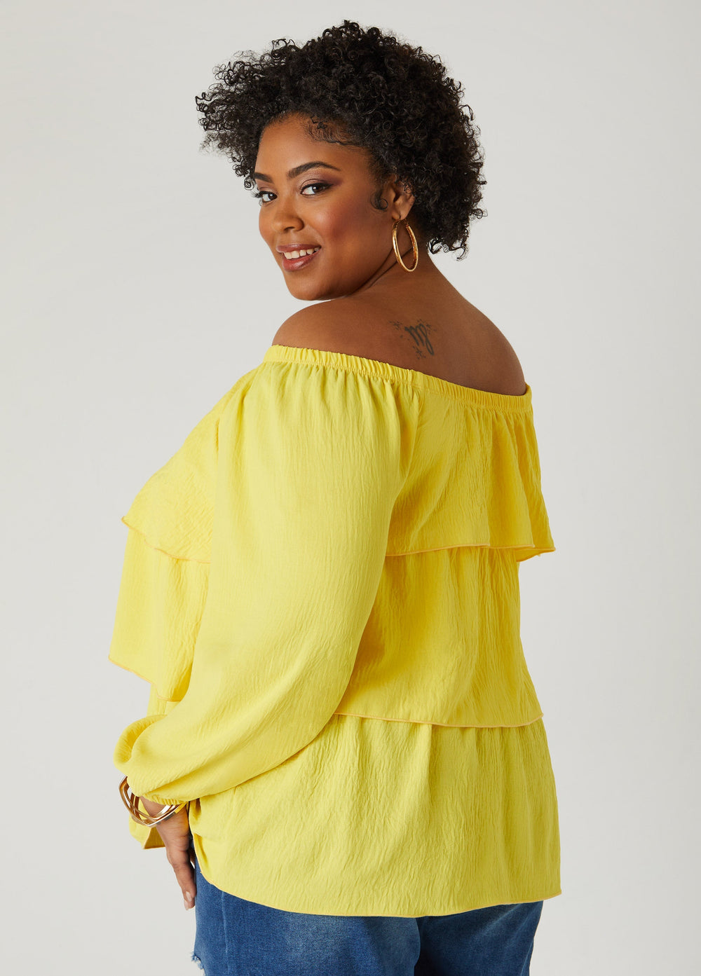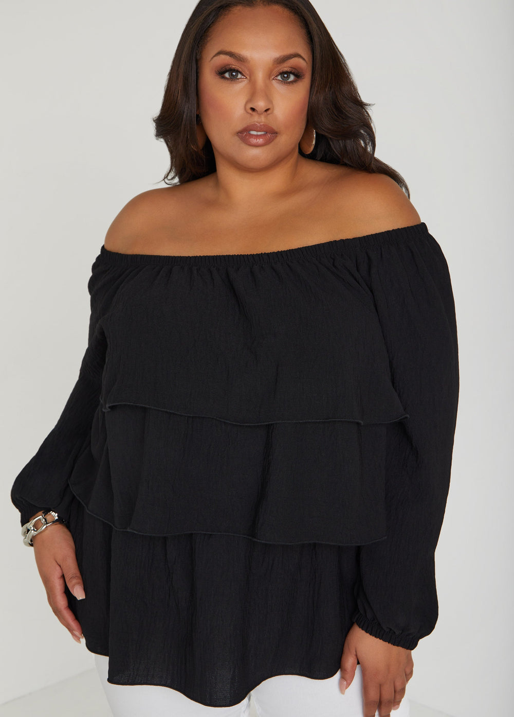 Catch the summer vibes in this off-the-shoulder blouse. The elasticized bustline adds a flattering fit while the flowy tiers keep things breezy and chic. Perfect for days that call for a little extra sunshine—and a lot of attention.